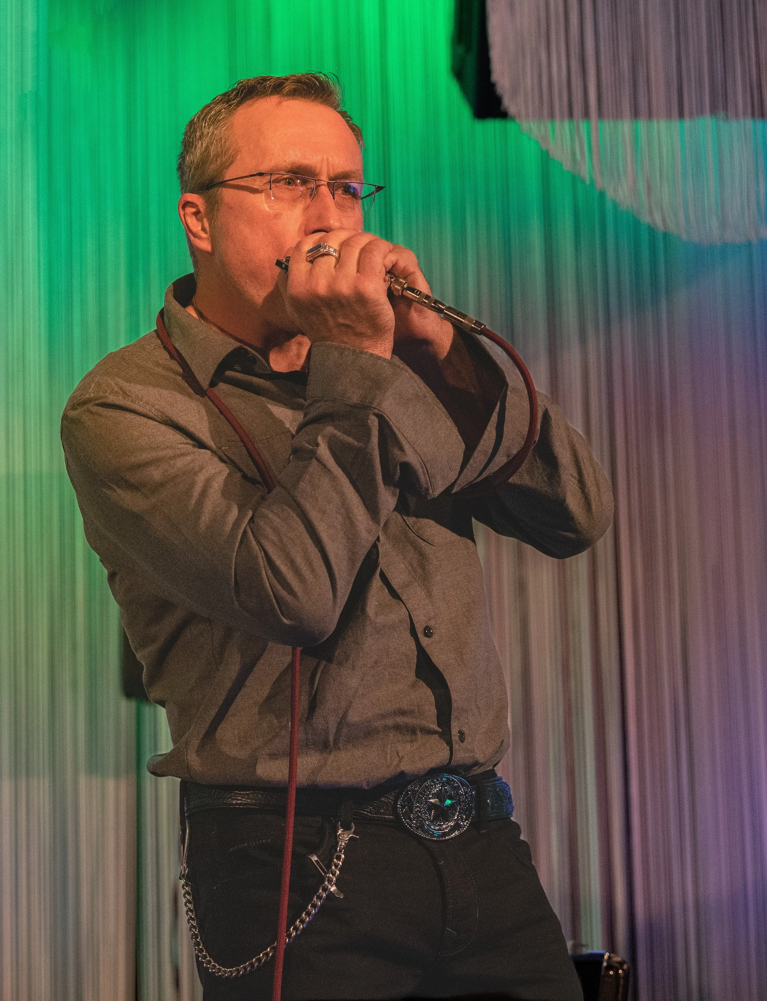 (Blues Harp) Mit 15 Jahren entdeckte er die Bluesmusik und erlernte das Spielen der Bluesharp autodidaktisch und spielt seit 2008 in verschiedenen Bands und als Gastmusiker.
